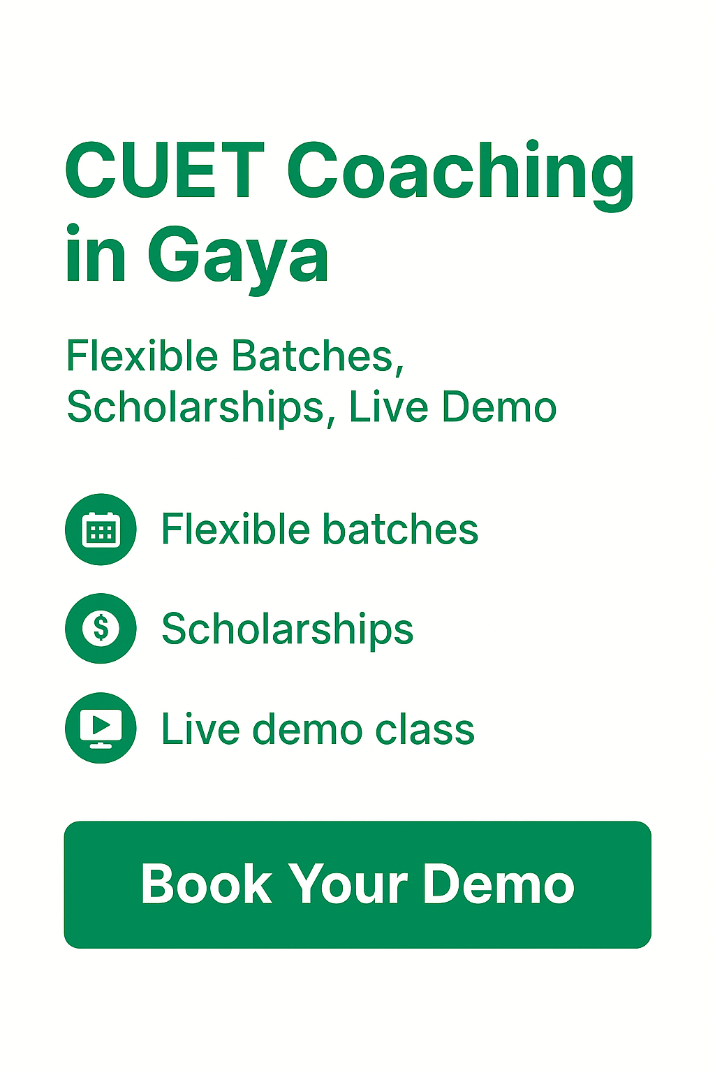 Are you preparing for the CUET exam in Gaya? Welcome to CUETPlus – a trusted local coaching institute for smart preparation for CUET. Whether you are a Class XI-XII student or drop year aspirant, CUETPlus Gaya provides expert-led batches, flexible timings, affordable fees with 100% free demo classes to give you the best opportunity at admission into top central universities in India.