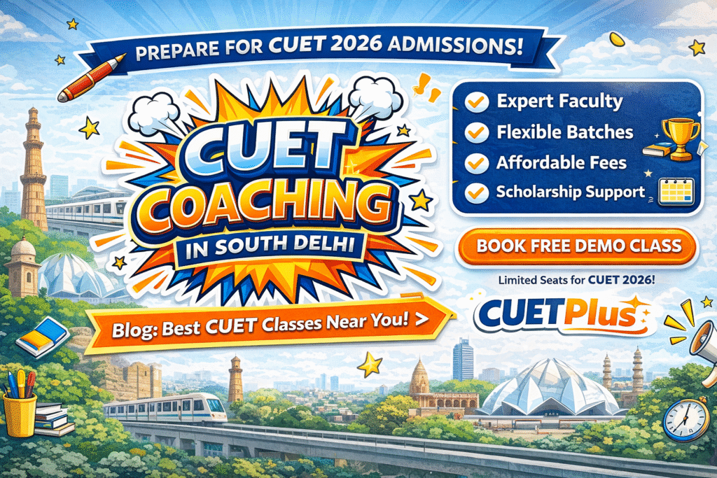 CUETPlus has structured, exam-oriented CUET coaching throughout South Delhi, helping students get a solid foundation, an understanding of the exam structure and adequate preparation to write the exam with confidence.