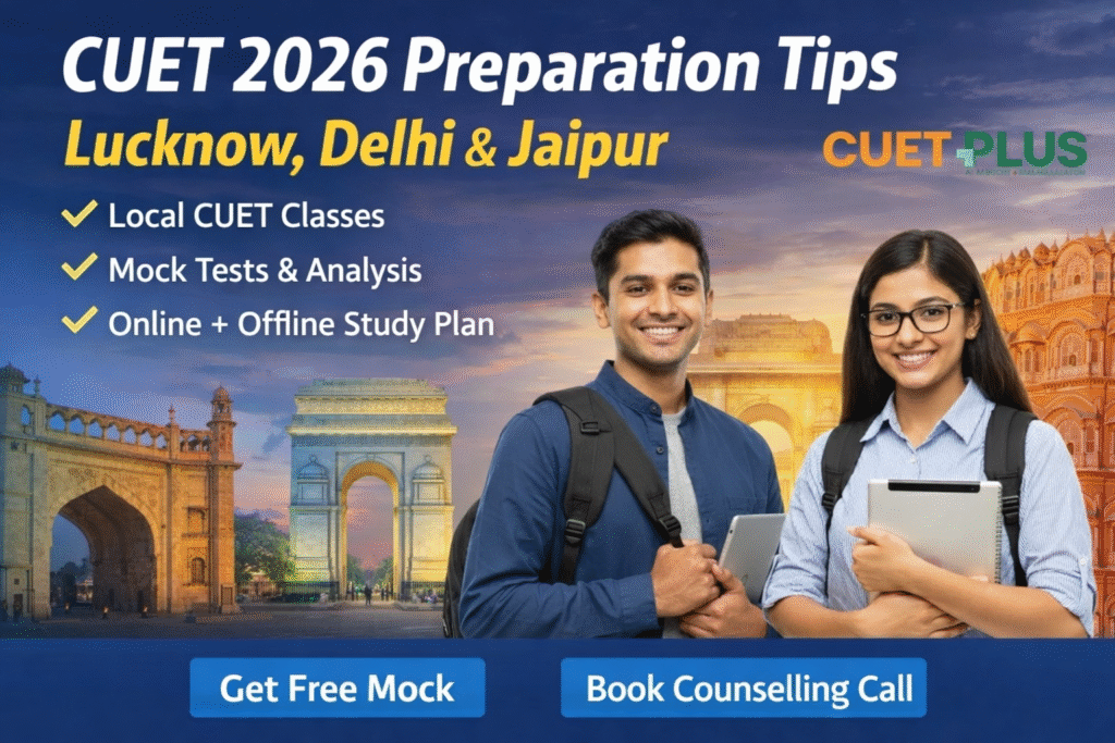 CUET preparation 2026 is no longer about completing the syllabus on time—it’s about having a smart and city-specific plan in accordance with increasing competition and examination trends.Students attaining education from prime educational centers like Lucknow, Delhi, or Jaipur understand diverse environments of learning, training practices, and preparation assistance in different cities; therefore, it is crucial to have a city-specific plan. With this exhaustive guide by CUETPLUS, you can understand the effective CUET preparation plan 2026 strategy that includes approaches for section-by-section preparation, city-by-city preparation practices, self-preparation methods, and better mock test preparation. Whether you are looking for trusted CUET classes near me or planning to have a proper combination of online and offline preparation for CUET 2026 preparation,