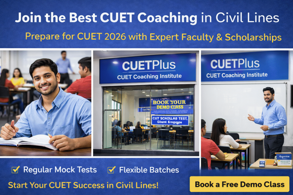 If you are serious about cracking CUET 2026 and looking for a trustworthy institute in Civil Lines, CUETPlus is the best option for you. With experienced mentors, planned study sessions, flexible batches, and scholarship programs, students are provided with all-round support in their preparation journey.