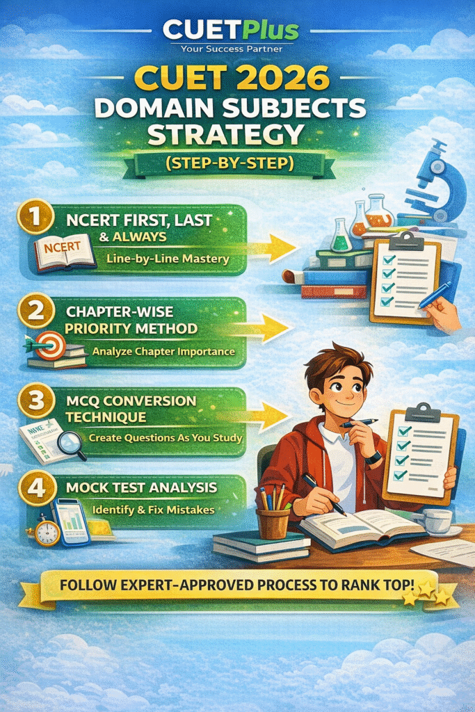 NCERT is mandatory, but it’s not enough. You must understand the concepts thoroughly and practice a lot of multiple-choice questions, as well as review your results from mock tests, as advised by CUETPlus.
